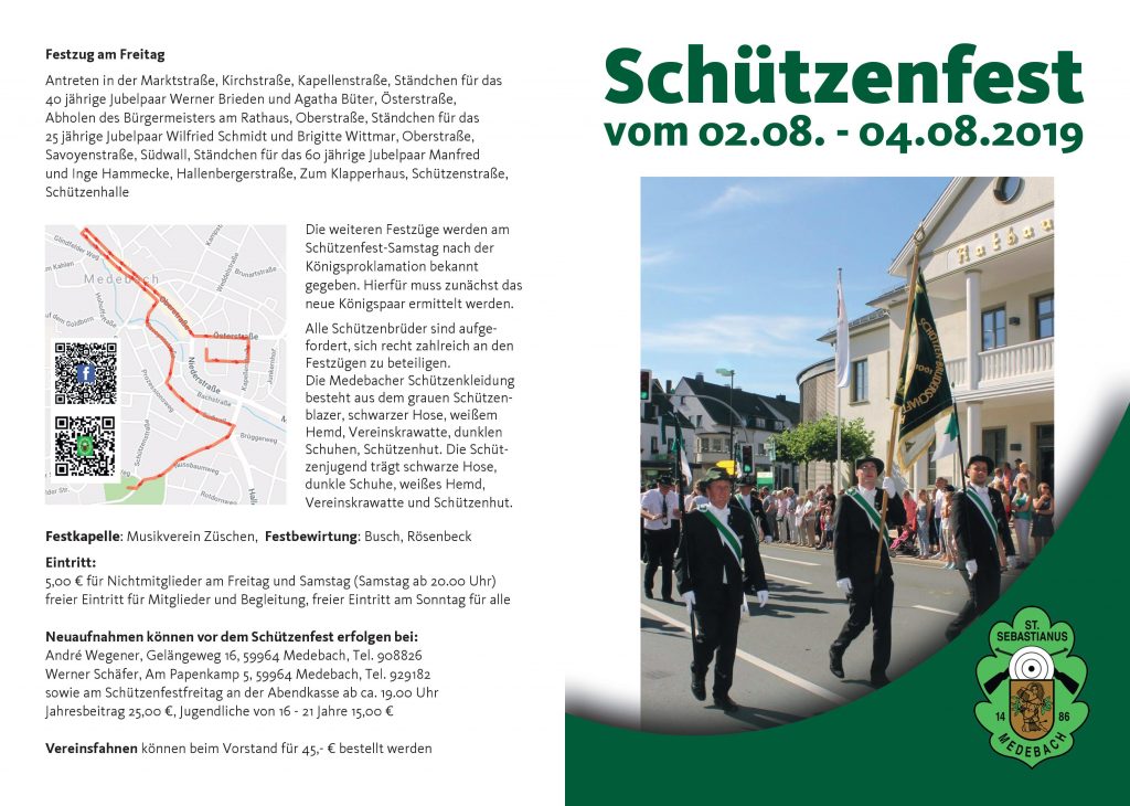Vom 02.08.-04.08.2019 feiern wir wieder unser traditionelles Schützenfest. Wir hoffen, dass wir in diesem Jahr wieder mit euch harmonische Stunden verbringen können und laden recht herzlich dazu ein.