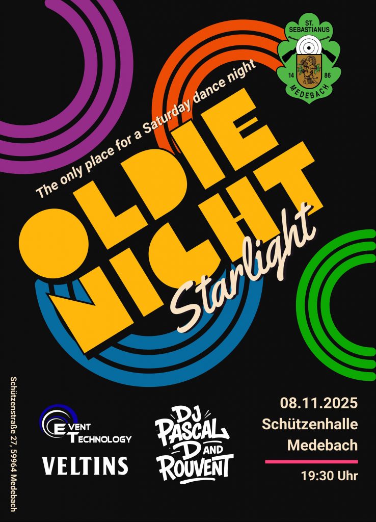 Oldie Night Starlight revival Die legendäre Oldie Night kommt zurück! Save the date! Endlich wieder Disco-Fieber in der Schützenhalle!
